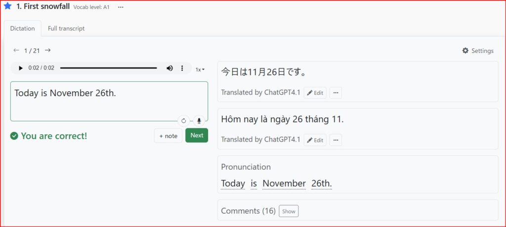 Chính vì vậy, mình đã chọn “DailyDictation”.